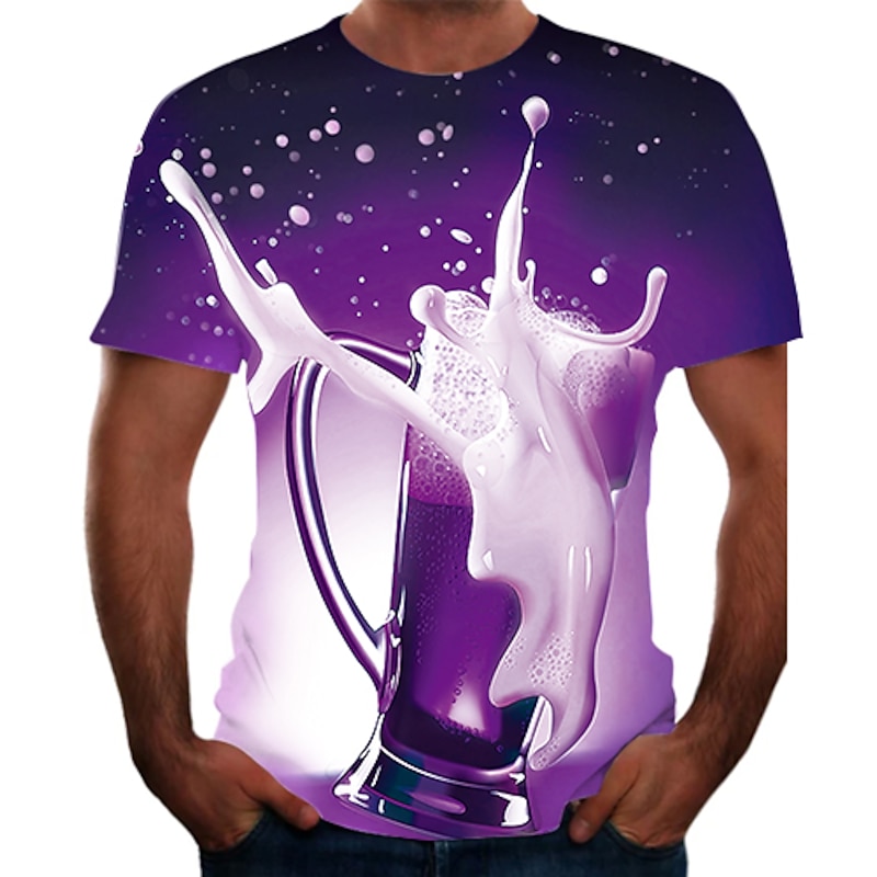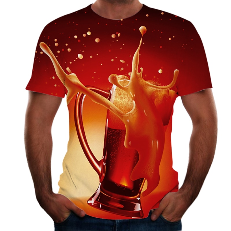 More information about Men's Graphic Beer Shirt T Shirt Short Sleeve T shirt 3D Print Round Neck Shirt Streetwear Basic Daily Club Yellow Red Purple Summer Clothing Apparel Plus Size S M L XL 2XL 3XL