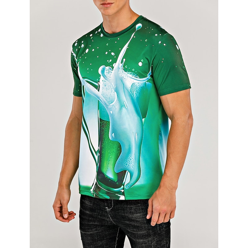 Highlights [Fabric]: Crafted from a blend of spandex and polyester, this men's T-shirt offers a soft, breathable fabric that ensures comfort and mobility in warm weather. The micro-elastic quality brings a relaxed fit for easy, everyday wear. [Fit]: Designed with a regular fit, this T-shirt provides a standard and comfortable silhouette, making it an ideal choice for daily activities. The short sleeves and round neckline add to the classic and versatile appeal. [Design Highlights]: This vibrant T-shirt features an eye-catching 3D beer mug print, capturing a splash of frothy beer that stands out for its dynamic and fun style. Ideal for beer enthusiasts, the graphic design resonates with a lively, novelty vibe. [Occasions]: Perfect for casual outings, club visits, and relaxed daily wear, this T-shirt seamlessly fits into a variety of settings. It's an excellent choice for summer streetwear, allowing you to embrace both comfort and style effortlessly. [Size Range]: Available in sizes ranging from S to 3XL, this T-shirt accommodates a broad spectrum of body types, ensuring a comfortable fit for all.