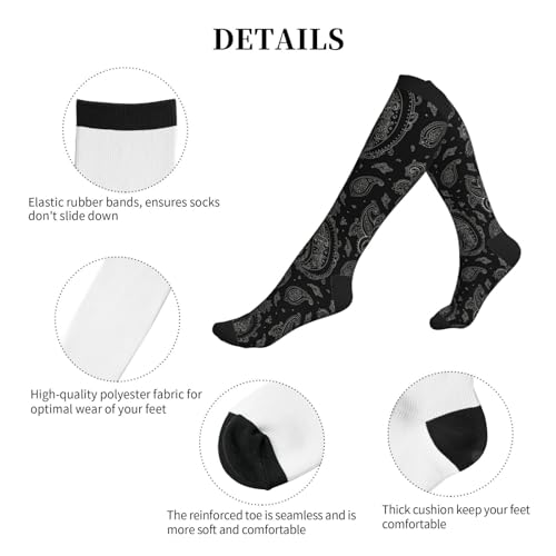Black Paisley Compression Socks For Women Men Knee High Running Socks For Running 4
