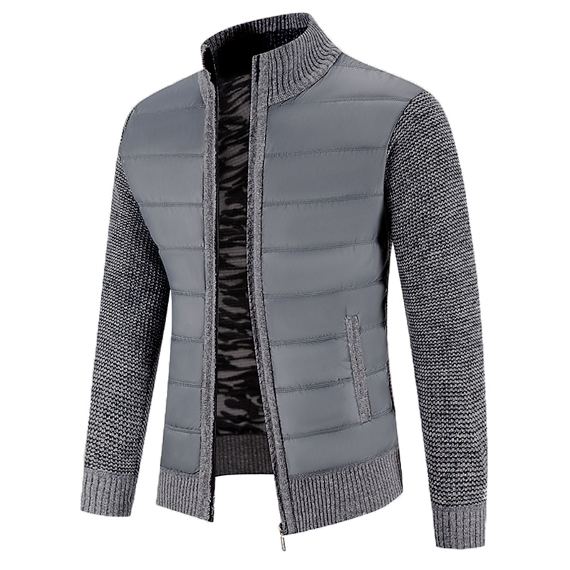 Men's Cardigan Sweater Zip Sweater Sweater Jacket Fleece Sweater Ribbed Knit Stand Collar Clothing Apparel Winter Dark Grey Black S M L 10