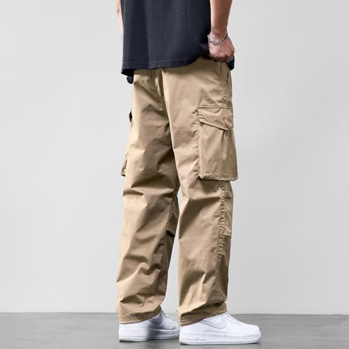 EnllerviiD Men's Baggy Cargo Pants Elastic Waist Relaxed Fit Work Pant Casual Outdoor Trousers with Pockets