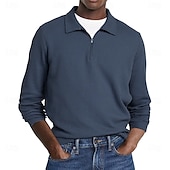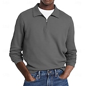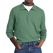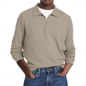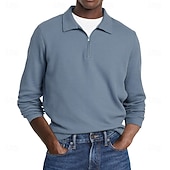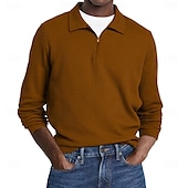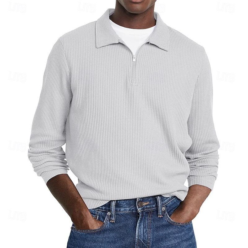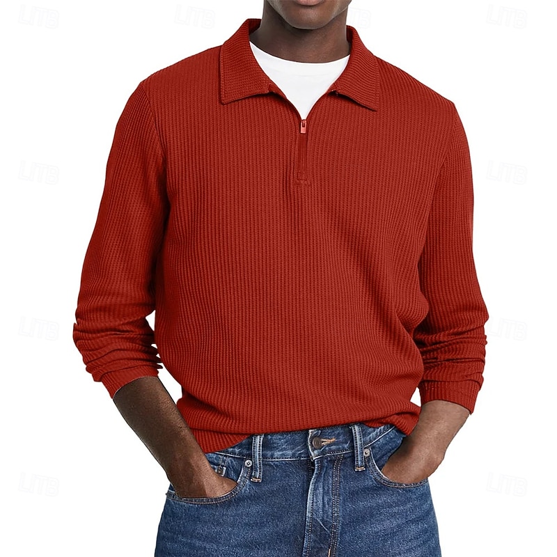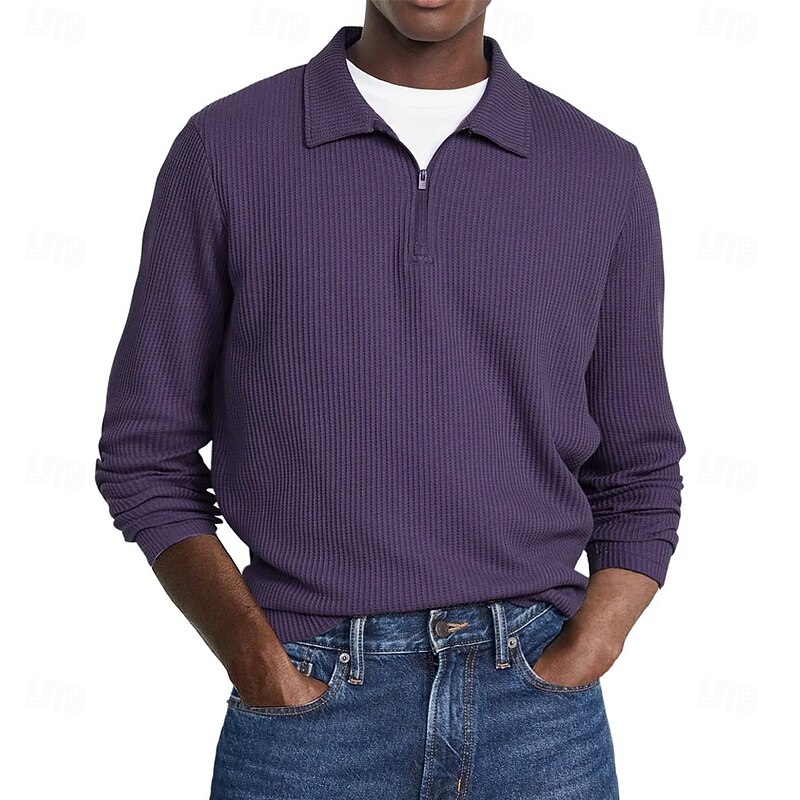 More information about Men's Waffle Polo Shirts Street Casual Zip Lapel Long Sleeve Basic Modern Plain Textured Buttons Spring Fall Black White Red Navy Blue Purple Brown Waffle Polo Shirts