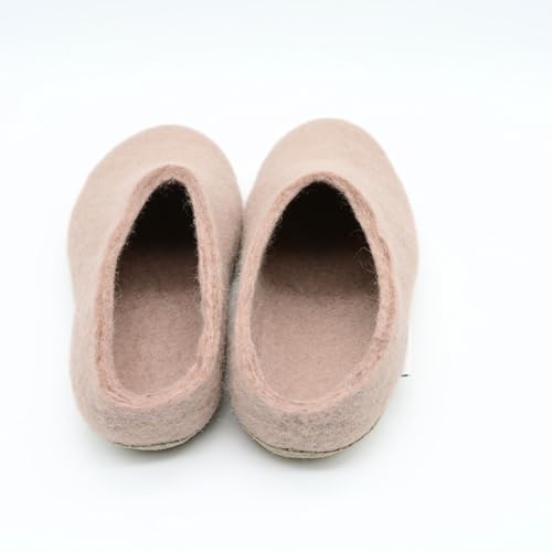 Pale Pink Handmade Slippers- Felt Slipper: Soft, Cozy And Durable- Wool Slip Ons Featuring Pure Suede Leather- Indoor Slides 5