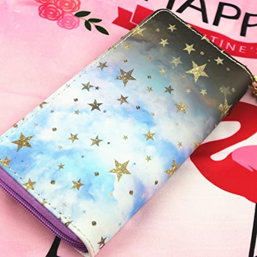 Timlee Cute Girls Long Wallets Long Purse Blue galaxy Star Wallet for Teen Girls Christmas Gift(Purple star 0115) 6