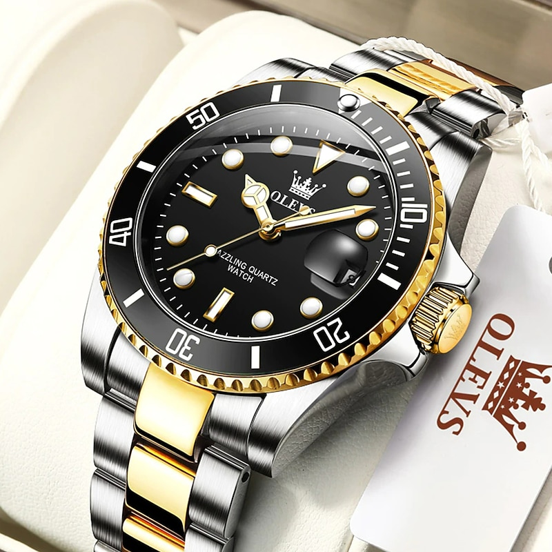 OLEVS Mens Quartz Watches Top Brand Luxury Business Waterproof Luminous Large Dial Men Wristwatches Sports Stainless Steel Watch 24