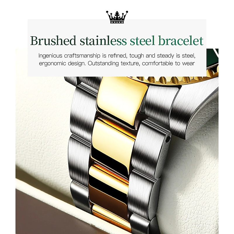 Highlights 1. 30ATM Waterproof: Enjoy your time in and out of the water worry-free with the ability to wear this watch while swimming or washing your hands. 2. HD Luminous Display: Easily keep track of time even during nighttime with environmentally friendly and non-toxic luminescent materials. 3. Durable Stainless Steel: Trust in the longevity of this timepiece, made with all stainless steel material that won’t tarnish. 4. High-Quality Quartz Movement: This watch is built to last with a movement that provides over 2 years of service. 5. Versatile Usage: This watch is perfect for any occasion, from sports and cycling to dressy events, adding a touch of elegance to any outfit while also making timekeeping a joy.