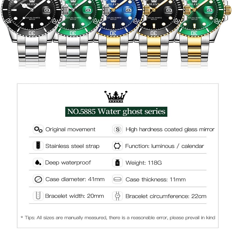 OLEVS Mens Quartz Watches Top Brand Luxury Business Waterproof Luminous Large Dial Men Wristwatches Sports Stainless Steel Watch 22