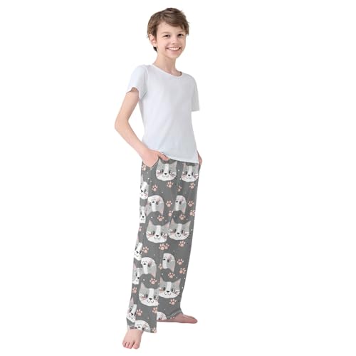 Cat Face Pajamas Bottoms with Pockets Comfy Pjs Sleepwear Elastic Waistband Pajamas Pants Lounge Pants for 6-14 Years 7