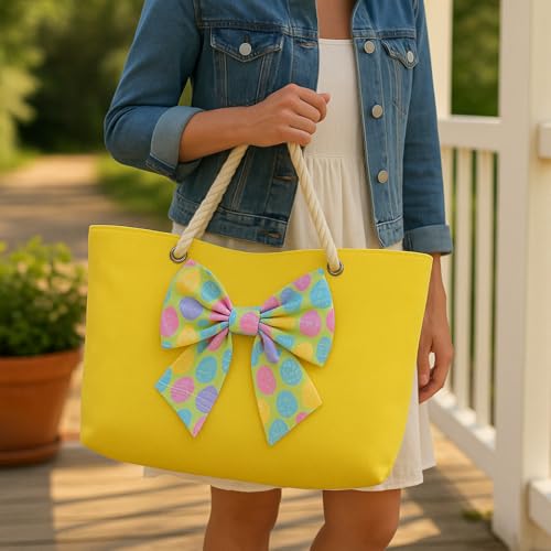 Summer Weekender Bag –Bow Design–Large Travel Tote for Women – 24"x13"– Beach Bag,Rope Handles –Gift 4