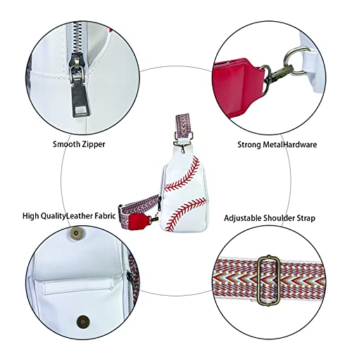 FAYBA Small Sling Bag for Women Crossbody Bag, Baseball Print PU Leather Wide Guitar Strap Chest Sling Backpack Purse 5