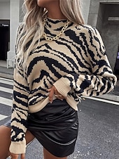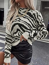 More information about Women's Sweater Fashion Streetwear Casual Striped Ribbed Crew Neck Knitted Long Sleeve Regular Tops Knit Outdoor Daily Weekend White Apricot Fall Winter