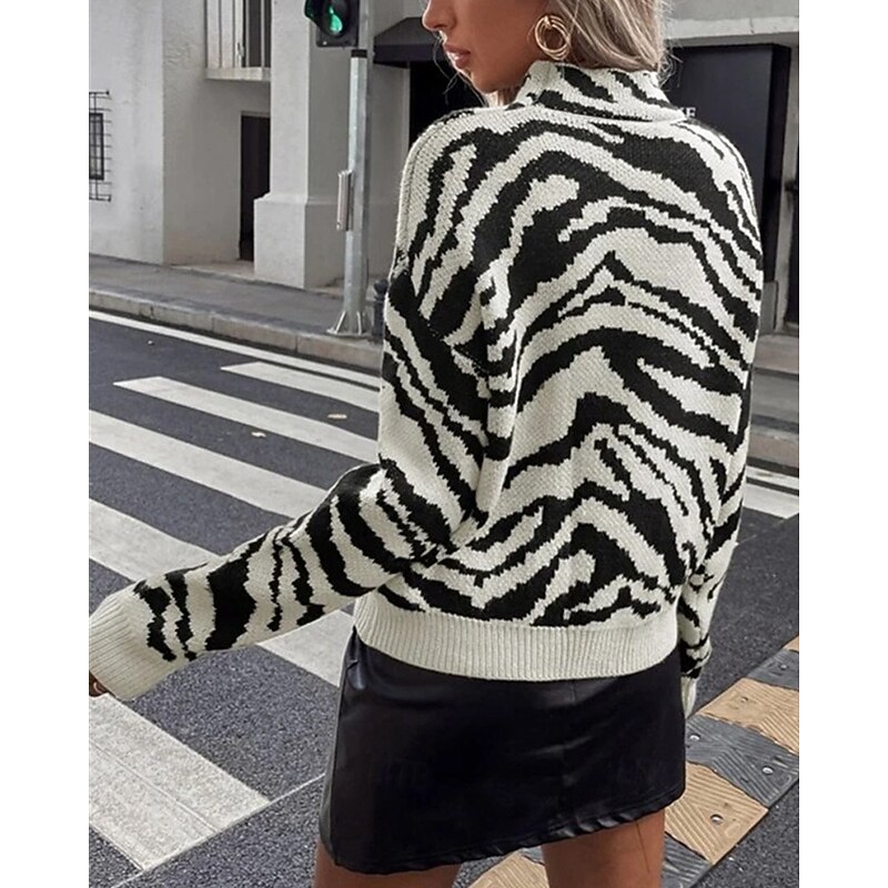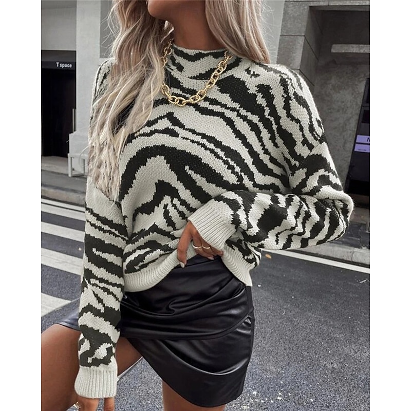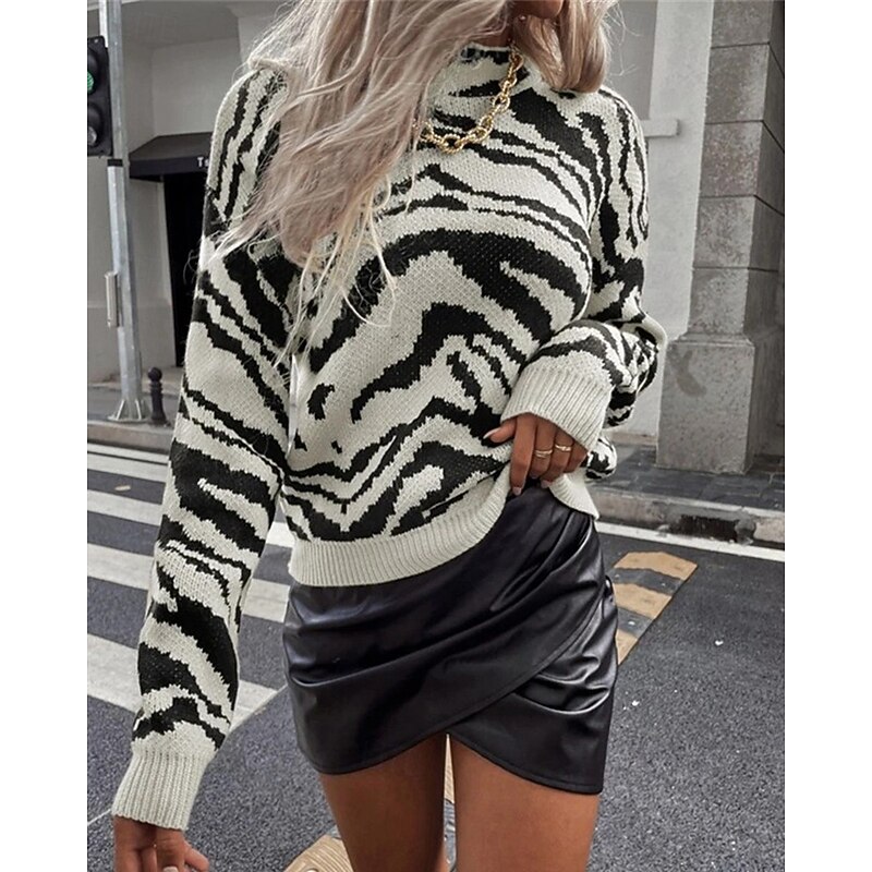 HOT ! Women's Sweater Fashion Streetwear Casual Striped Ribbed Crew Neck Knitted Long Sleeve Regular Tops Knit Outdoor Daily Weekend White Apricot Fall Winter