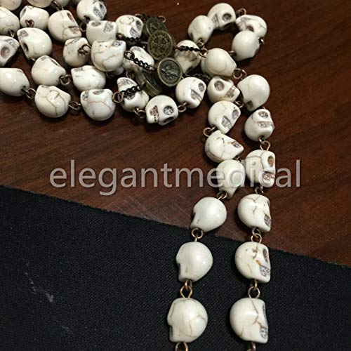 elegantmedical Catholic XL10MM howlite skull beads Antiqued Rosary Cross Bronze Cross Necklace Catholic GIFTS 1