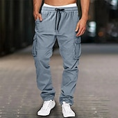 More information about Men's Cargo Pants Trousers Casual Pants Drawstring Elastic Waist Multi Pocket Plain Comfort Soft Full Length Outdoor Casual Daily Fashion Streetwear Black Green