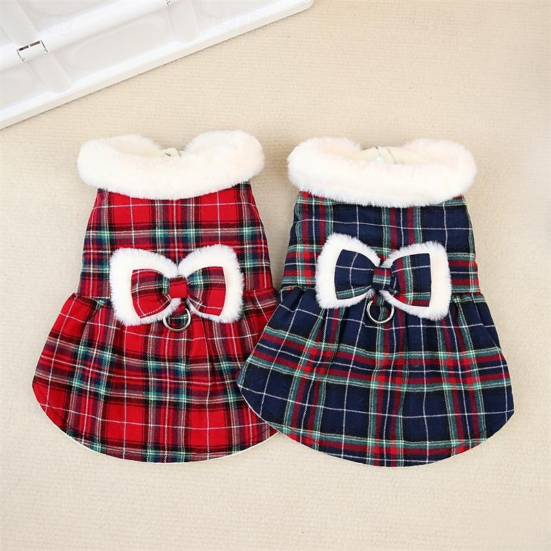 Dog Cat Dress Elegant Cute Winter Breathable Soft Washable Comfortable Thick Vacation Dailywear Casual Daily Weekend Walking Dog Clothing for Cat Dog Husky Labrador Alaskan Malamute 1