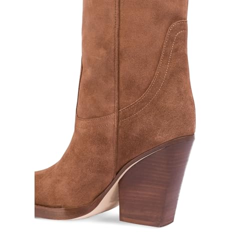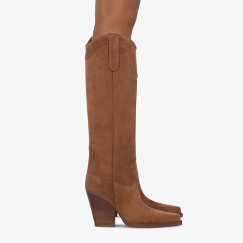 Knee High Cowboy Boots for Women Pointed Toe Chunky High Heel Pull-on Suede Western Cowgirl Shoes Fall Long Tall Boots