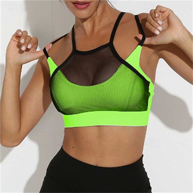 HOT ! Women's Solid Colored Tennis Bra Sports Bra Mesh Shockproof Moisture Wicking Breathable Tennis Golf Pickleball Halter Neck Spaghetti Strap Black White+Black Green+Yellow Tennis Clothing