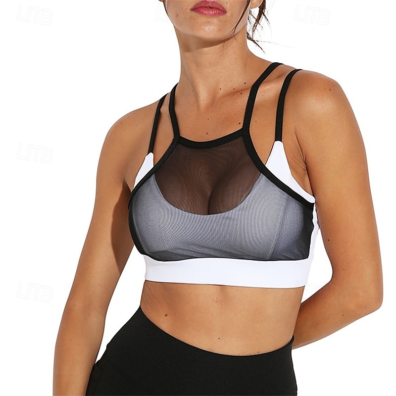 Women's Solid Colored Tennis Bra Sports Bra Mesh Shockproof Moisture Wicking Breathable Tennis Golf Pickleball Halter Neck Spaghetti Strap Black White+Black Green+Yellow Tennis Clothing 1