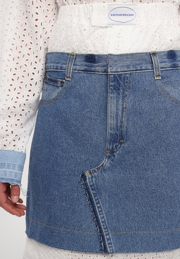 BOXER SKIRT WITH BRODERIE ANGLAISE DETAIL - Denim skirt 7