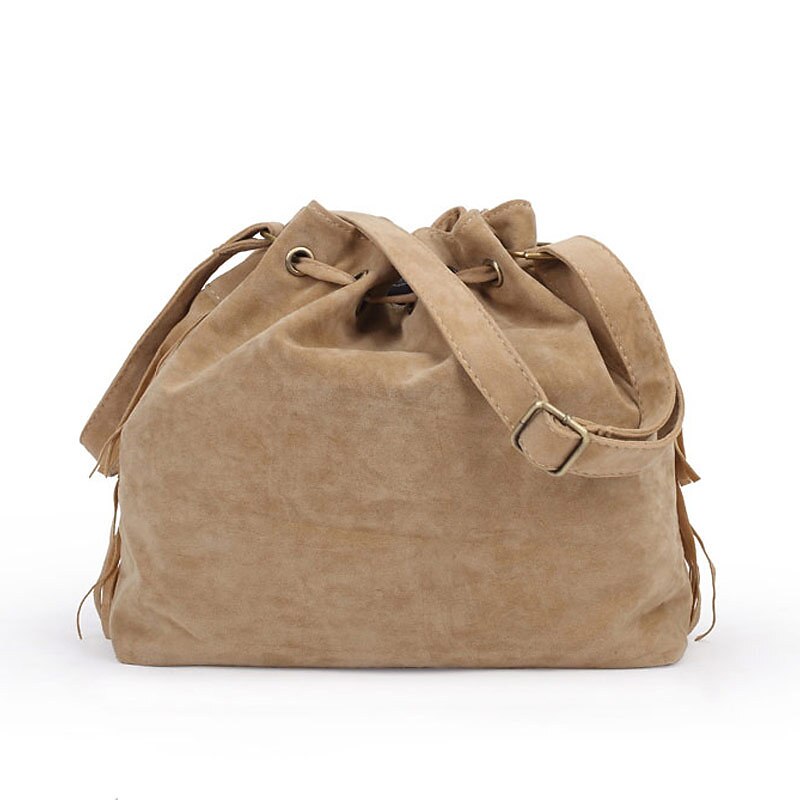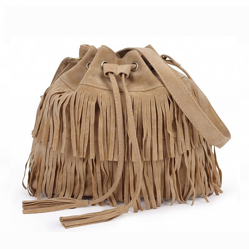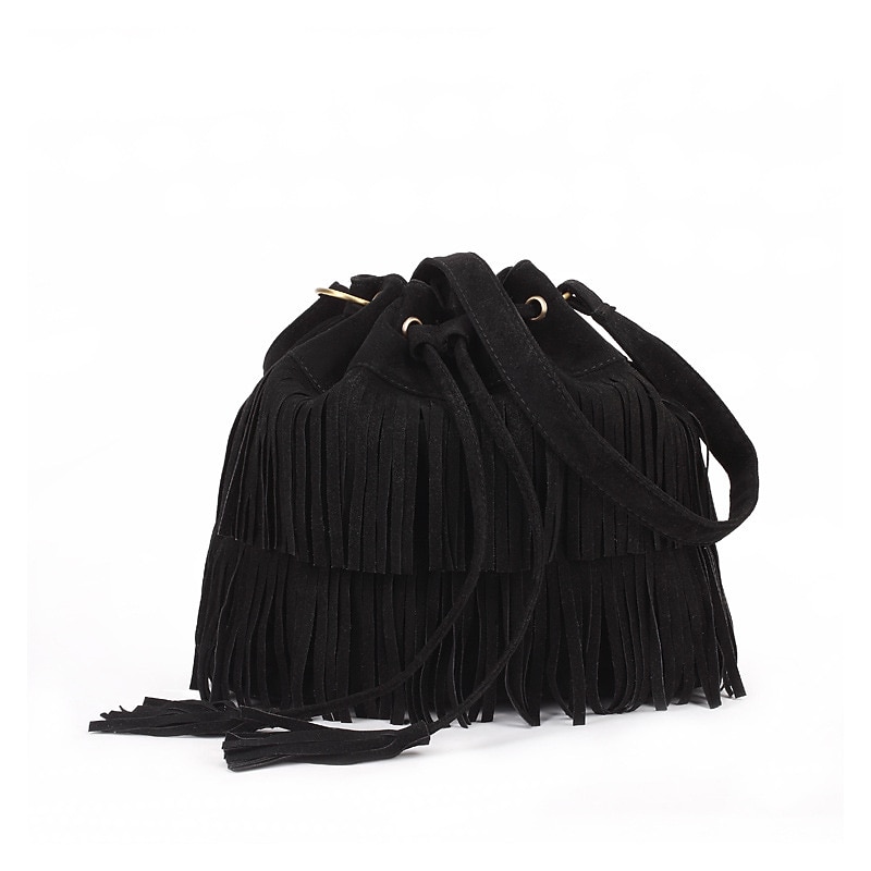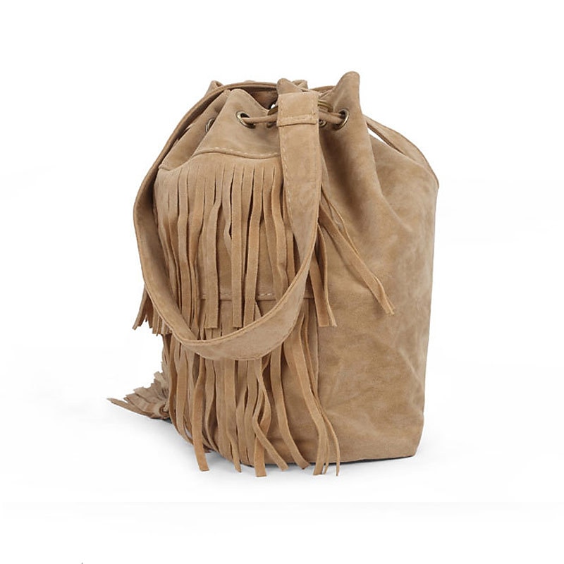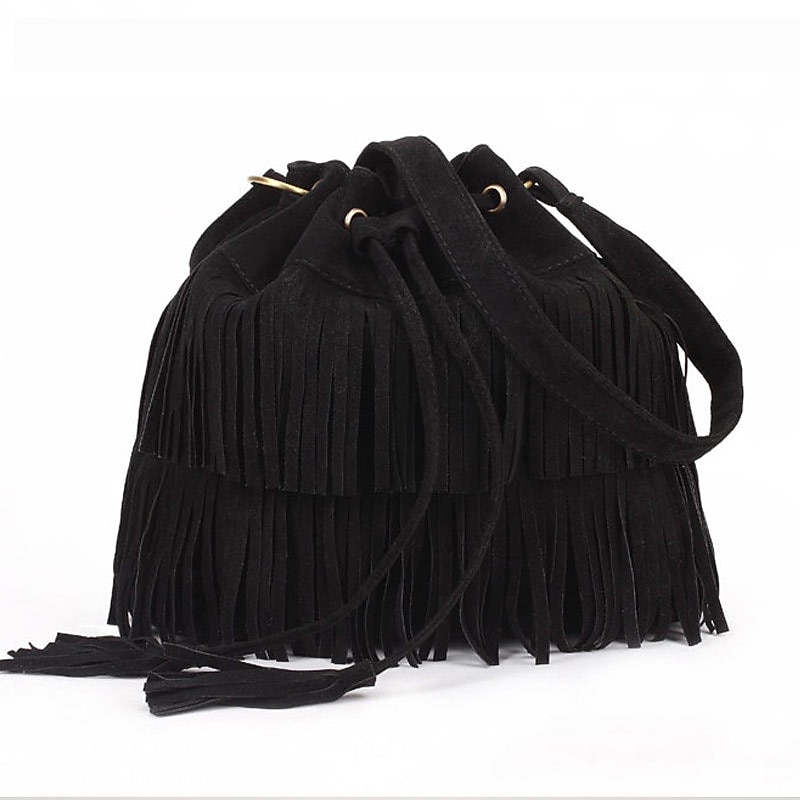 HOT ! Women's Suede Fringe Bucket Bag – Boho Style Drawstring Crossbody Purse for Music Festivals, Casual Outings, and Weekend Getaways