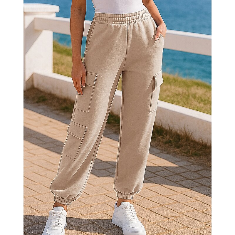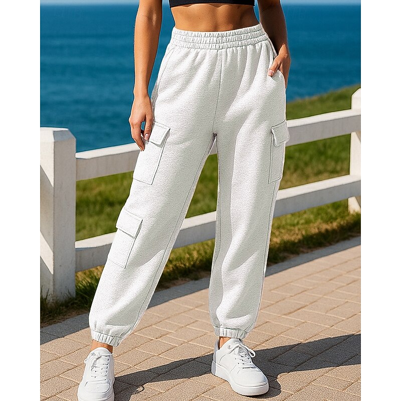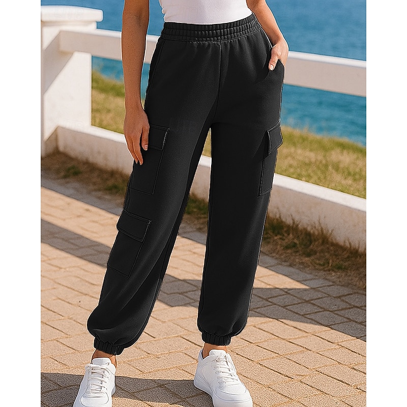 Women's Sport  Sweatpants Trackpants with Pockets High Waist Bottoms Athleisure Gym Workout Fall Lightweight Travel Running Yoga Loose Fit Sportswear Activewear Solid Colored Black White Blue 9
