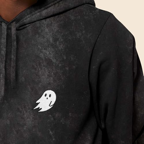 DALIX Ghost Embroidered Washed Hooded Sweatshirt Fleece Soft Cotton Mens 1