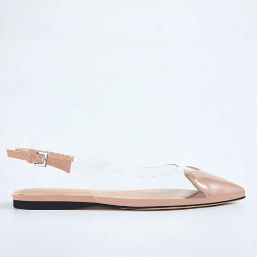 Women's Fashion Pointed Toe Heart Transparent PVC Slingback Flat Shoes Comfort Slip On Cap Toe Clear Ballet Flats Work Wedding Dress Flat Shoes for Women Nude Size 8.5 6