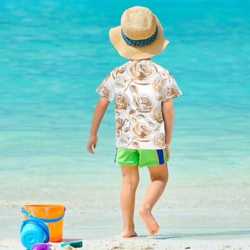 ALAZA Kids Rash Guard Boys Toddler Swim Shirts Short Sleeve Gold Rose UPF 50+ 3T 4