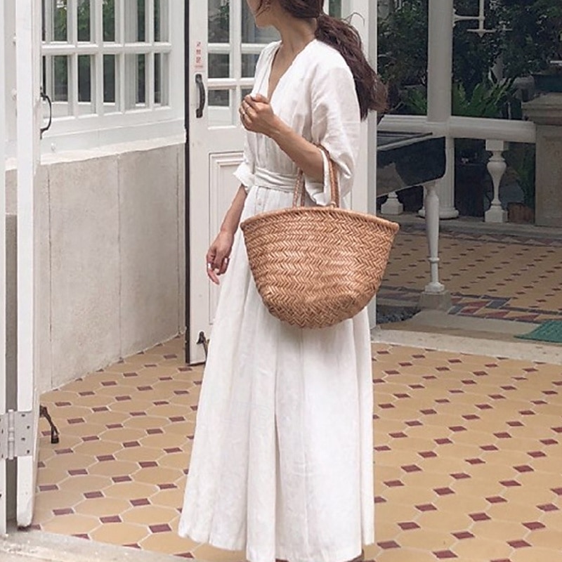 Women's Long Dress Maxi Dress Linen-Inspired Dresses White Dress Casual Dress Stylish Casual Vacation Daily Date Regular Fit Plain Long Sleeve V Neck Black White Summer Spring 12
