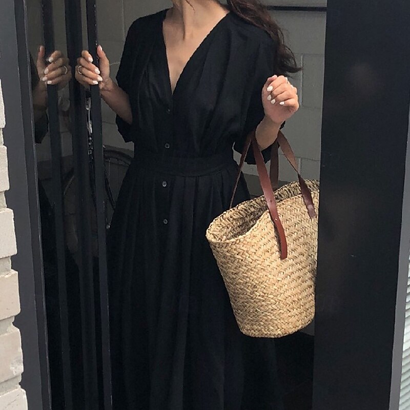 More information about Women's Long Dress Maxi Dress Linen-Inspired Dresses White Dress Casual Dress Stylish Casual Vacation Daily Date Regular Fit Plain Long Sleeve V Neck Black White Summer Spring