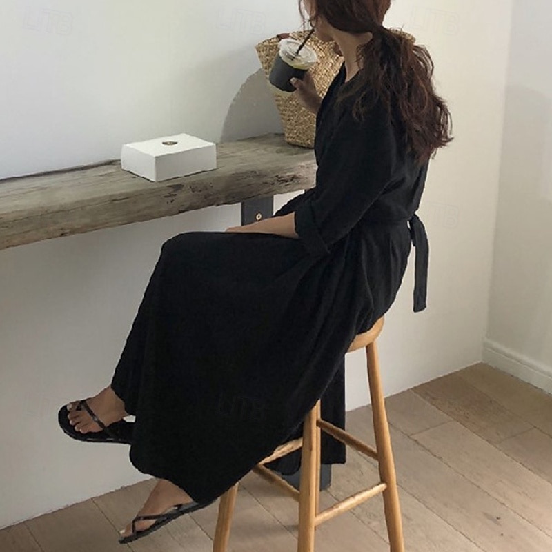 Women's Long Dress Maxi Dress Linen-Inspired Dresses White Dress Casual Dress Stylish Casual Vacation Daily Date Regular Fit Plain Long Sleeve V Neck Black White Summer Spring 14