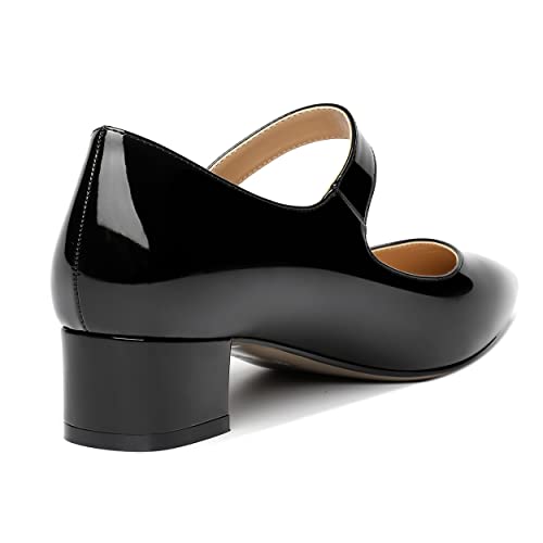 NUMALEO Womens Cute Dating Pearl Pointed Toe Ankle Strap Dress Patent Chunky Low Heel Pumps Shoes 1.5 Inch 1