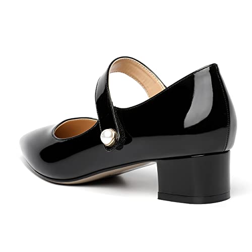 NUMALEO Womens Cute Dating Pearl Pointed Toe Ankle Strap Dress Patent Chunky Low Heel Pumps Shoes 1.5 Inch 5
