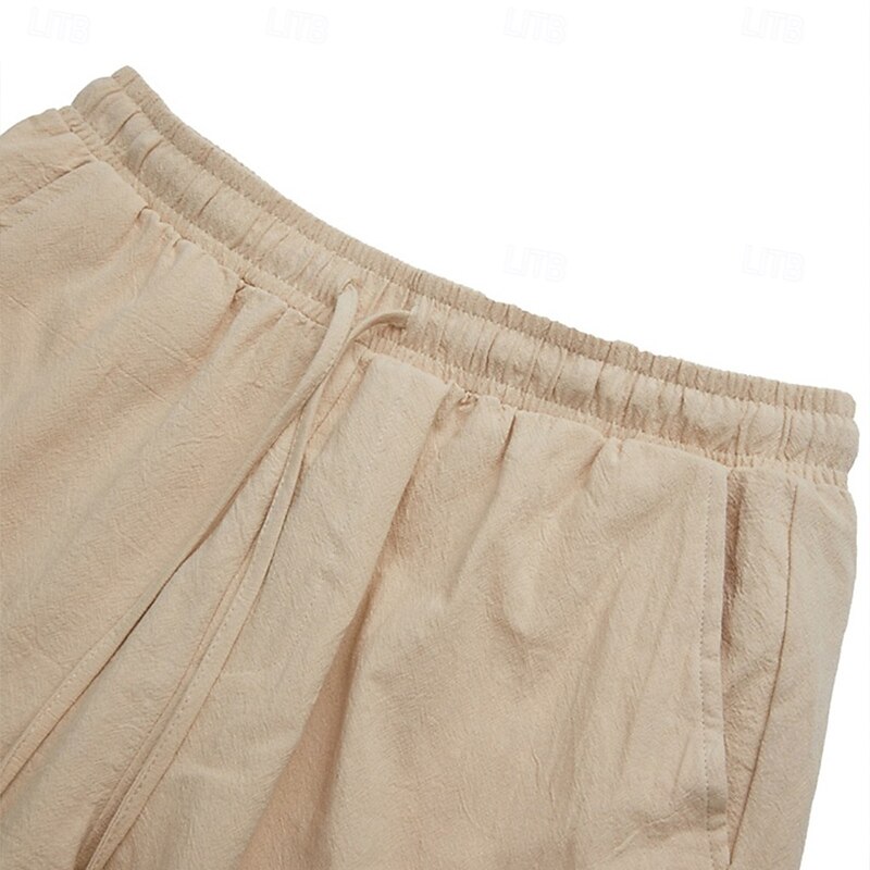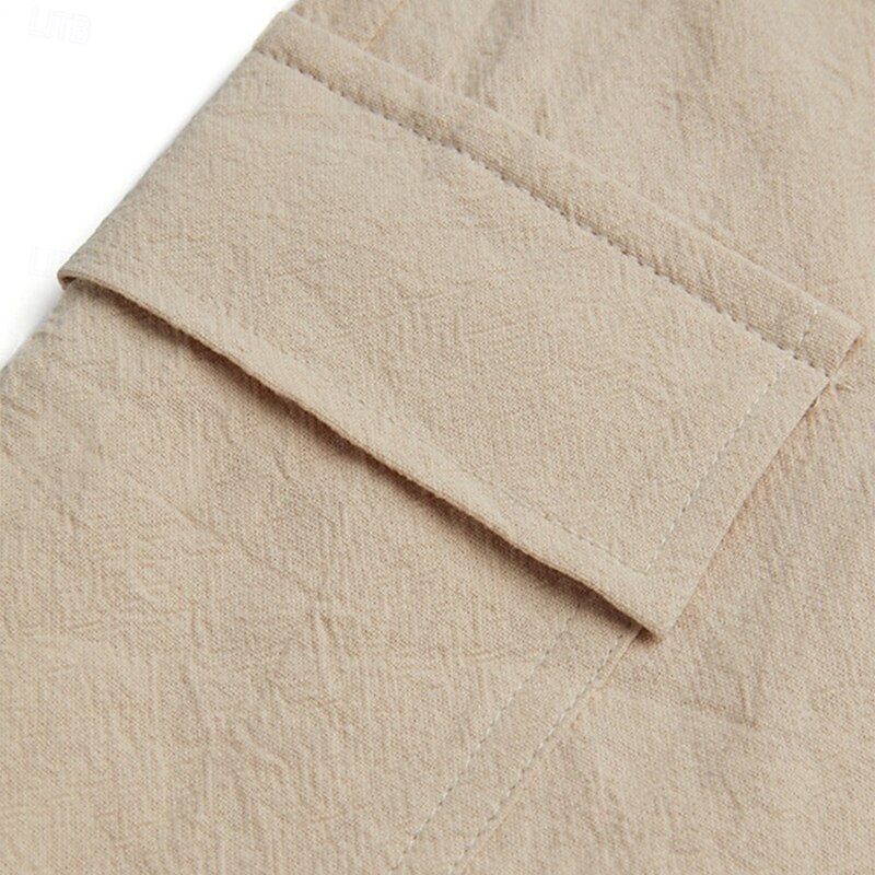 Men's Cargo Shorts Shorts Linen Shorts Summer Shorts Beach Shorts Drawstring Elastic Waist Multi Pocket Plain Knee Length Classic Style Casual Black White Inelastic 8