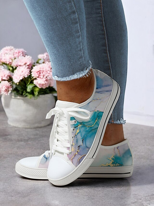 Women's Casual Canvas Sneakers - Stylish Watercolor Marble Print, Lace-Up Low-Top Tennis Shoes for Everyday Wear, Walking & Travel 7
