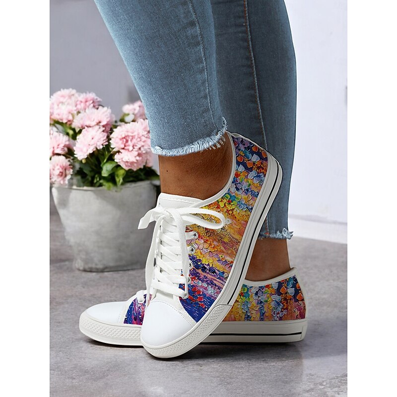 Women's Casual Canvas Sneakers - Stylish Watercolor Marble Print, Lace-Up Low-Top Tennis Shoes for Everyday Wear, Walking & Travel 1