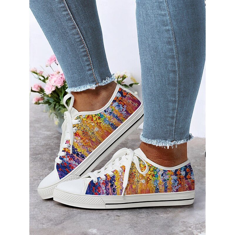 HOT ! Women's Casual Canvas Sneakers - Stylish Watercolor Marble Print, Lace-Up Low-Top Tennis Shoes for Everyday Wear, Walking & Travel