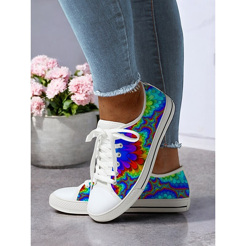 Women's Casual Canvas Sneakers - Stylish Watercolor Marble Print, Lace-Up Low-Top Tennis Shoes for Everyday Wear, Walking & Travel 12