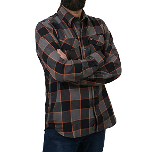 HOT ! Milwaukee Leather MNG11648 Men's Grey with Brown and Orange Long Sleeve Cotton Flannel Shirt - 2X-Large