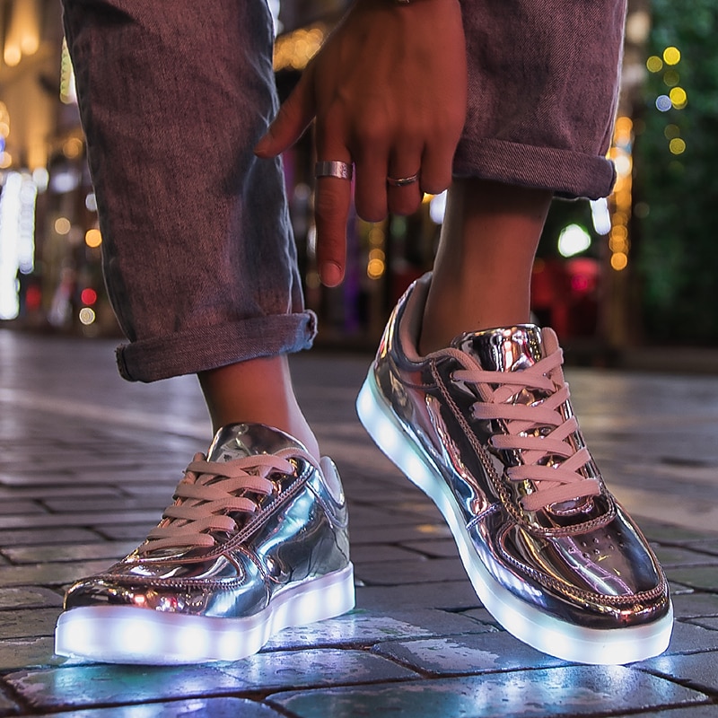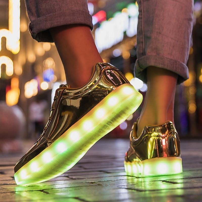 Highlights - Made with high-quality PU material - Comes with LED lights that have 7 different colors and 11 patterns to choose from - Versatile and suitable for various occasions including shopping, casual wear, nightclubs, biking, and jogging - Quick, 3-hour charging time with 9-12 hours of continuous lighting - Convenient hidden switch near the USB port allows you to change the color or make the shoes blink - Automatic shut off when fully charged - Not recommended to wash or clean, but can be polished or cleaned with shoe cleaners if necessary.