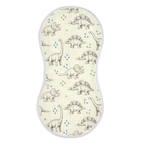 J JOYSAY Dinosaur Beige Baby Burp Cloths for Boys Girls Large 22''x11'' Cotton 4 Layer Baby Must Haves for Baby Drool one sizex4 6