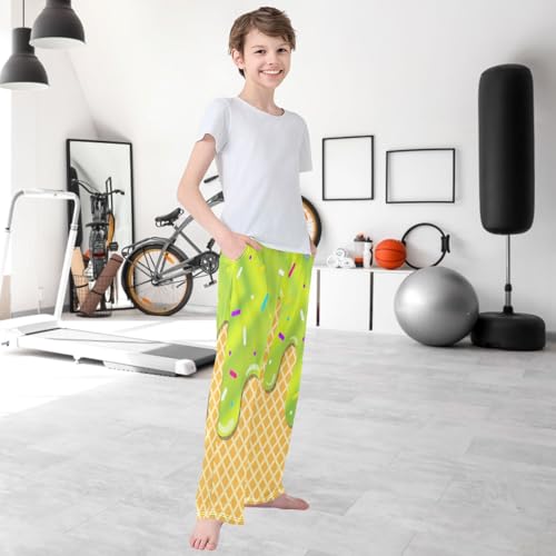 HOT ! Boy's Pants Green Stripe Ice Cream Jogger Pants Elastic Waist Long Bottoms Trousers with Pockets 6-14 Years