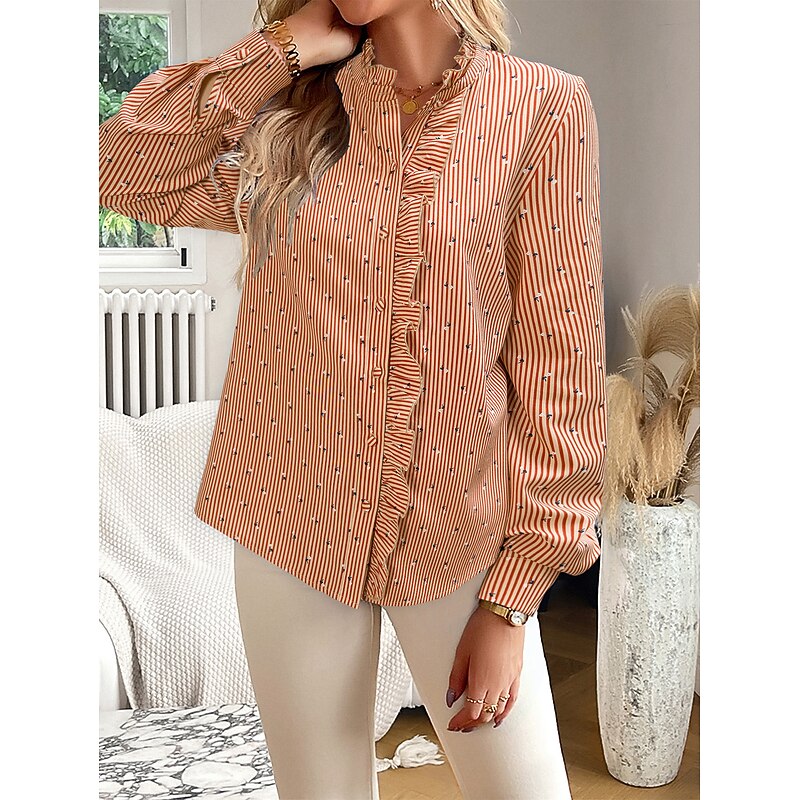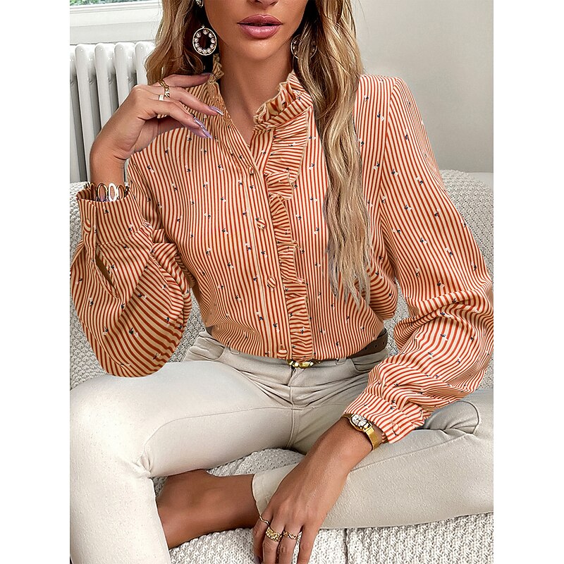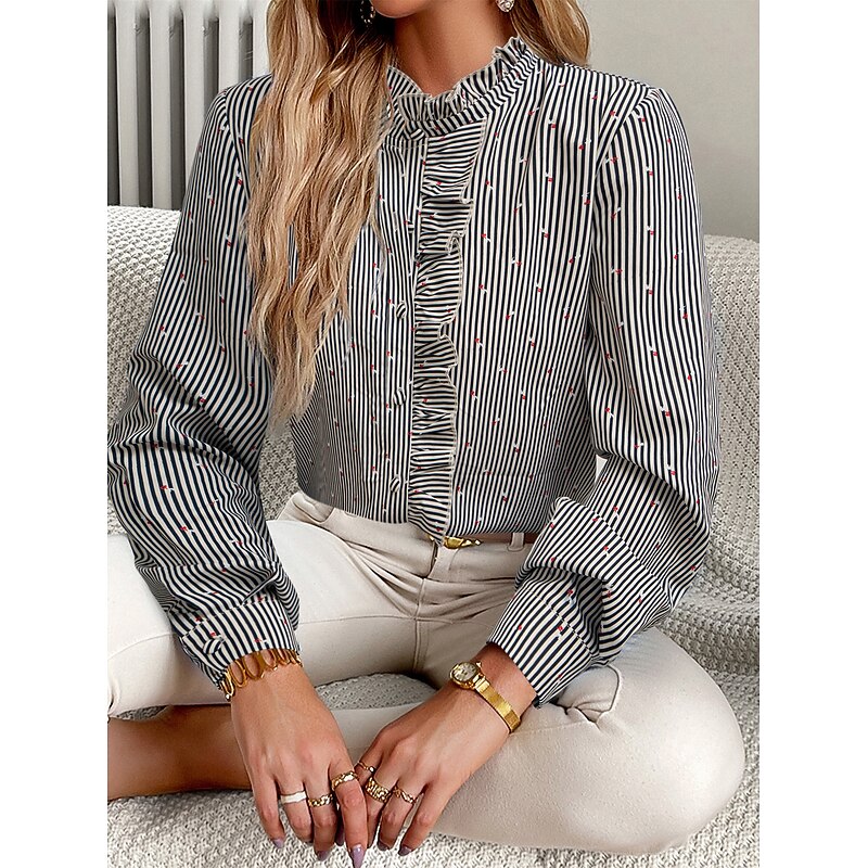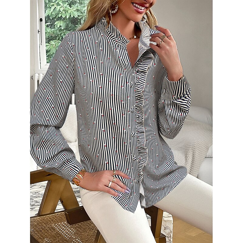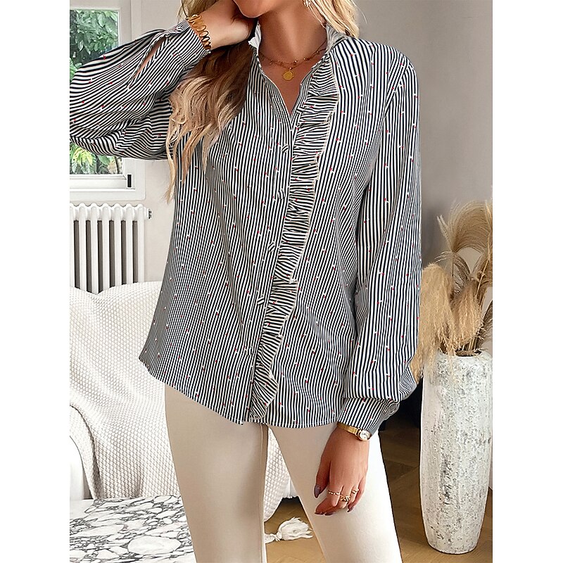 More information about Women's Blouse Designer Shirt Neutral Streetwear Romantic Striped Ruffle Buttons Long Sleeve Regular Tops Shirt Collar Work Going out Black White Red Blue Spring Fall & Winter