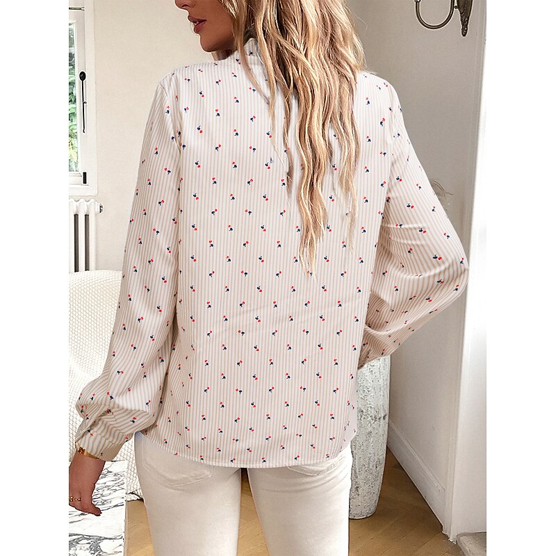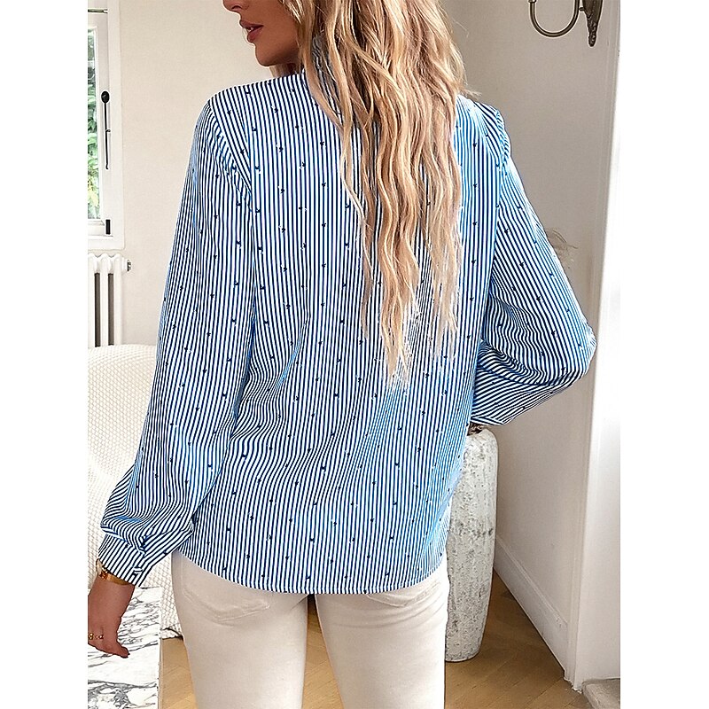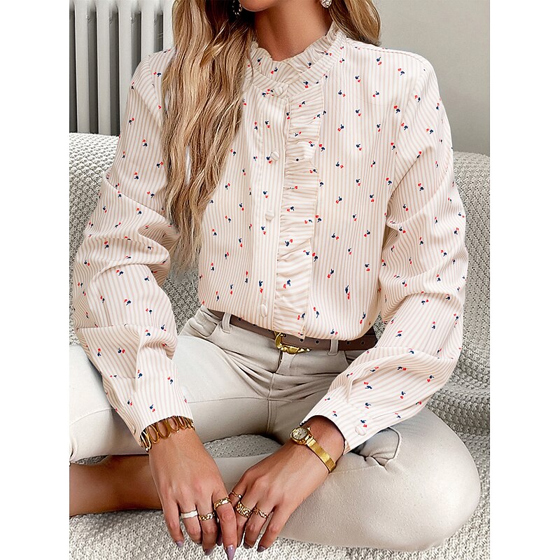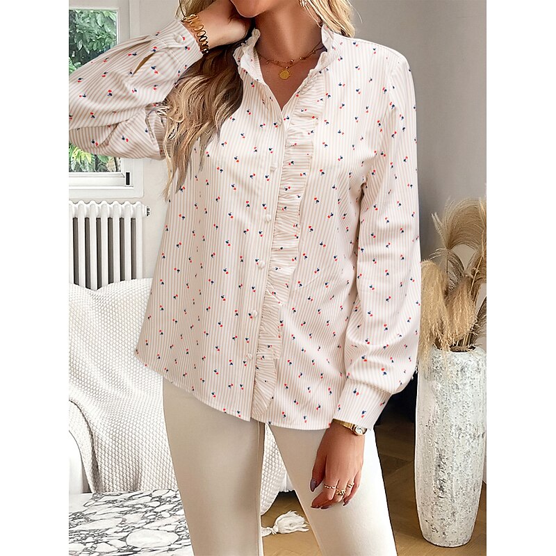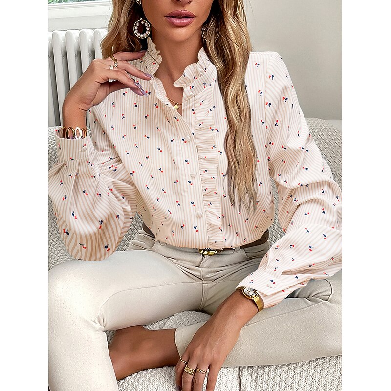 More information about Women's Blouse Designer Shirt Neutral Streetwear Romantic Striped Ruffle Buttons Long Sleeve Regular Tops Shirt Collar Work Going out Black White Red Blue Spring Fall & Winter