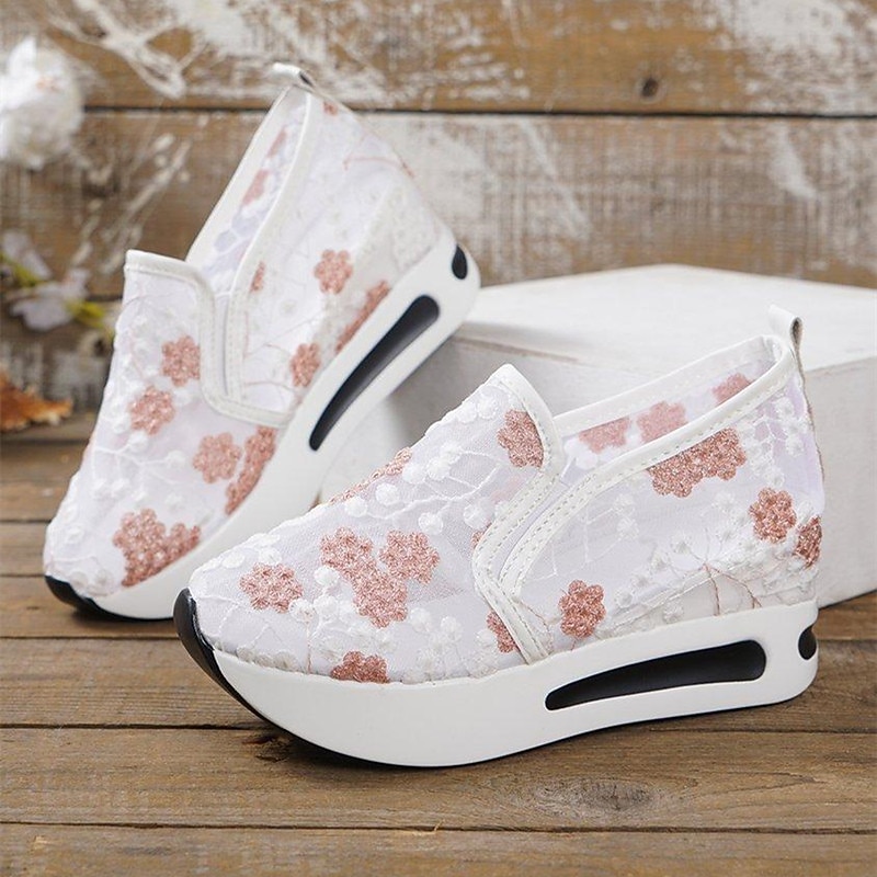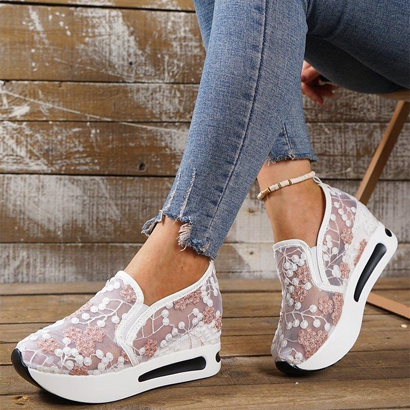 Elegant Floral Embroidered Women's Mesh Sneakers - Perfect for Casual Outings & Summer Events, Stylish Lace Detail, Breathable with Comfortable Wedge Heel 6