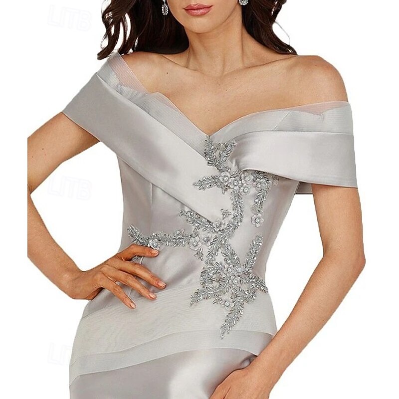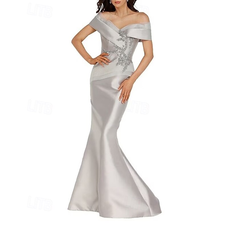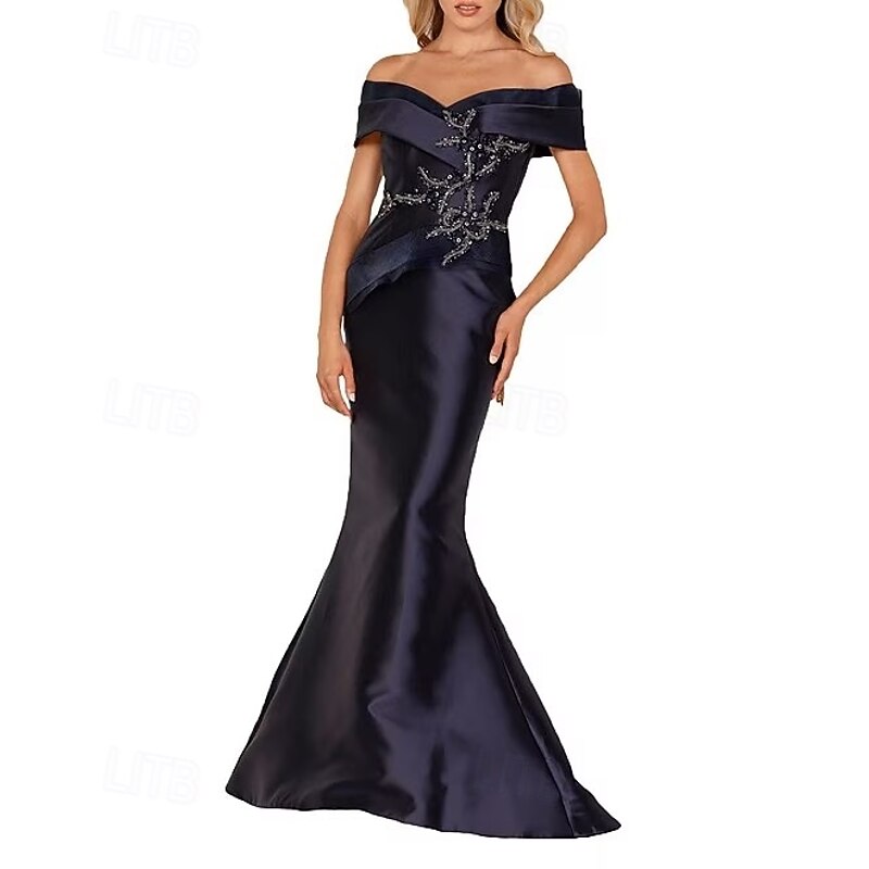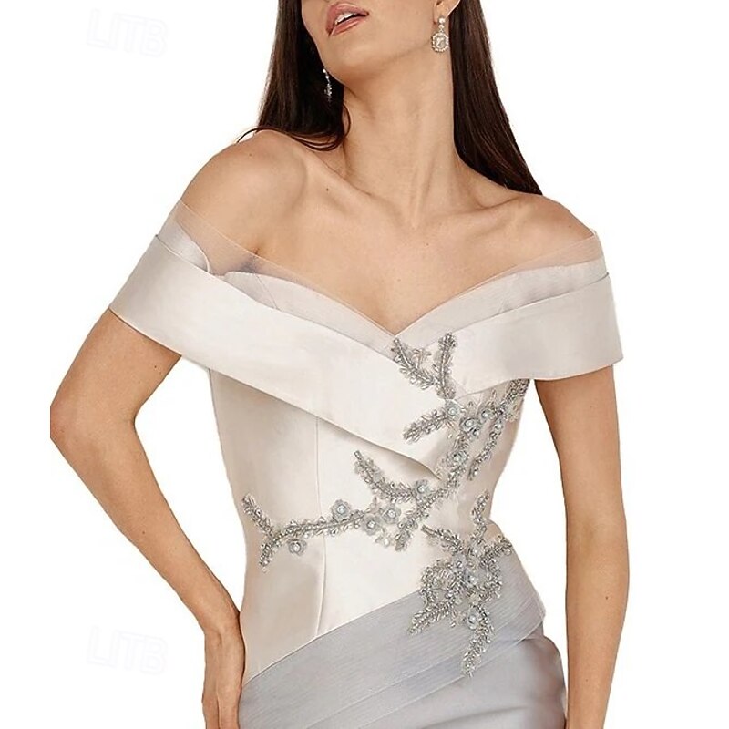 More information about Mermaid / Trumpet Evening Gown Elegant Dress Formal Wedding Floor Length Sleeveless Off Shoulder Satin with Beading