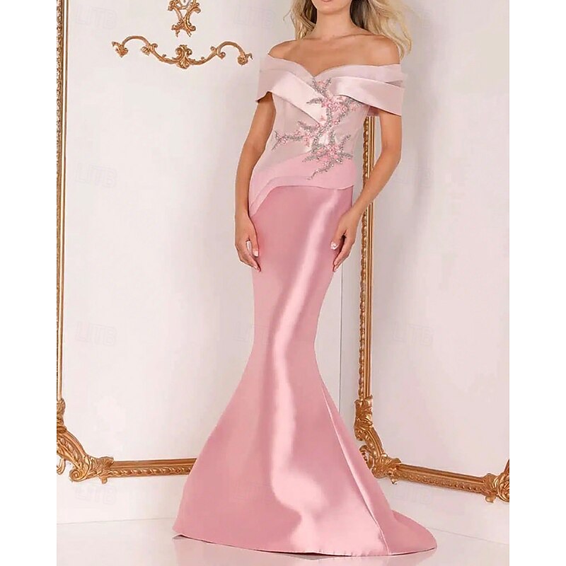 Mermaid / Trumpet Evening Gown Elegant Dress Formal Wedding Floor Length Sleeveless Off Shoulder Satin with Beading 1