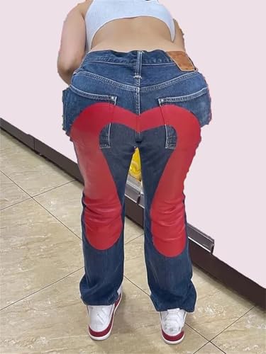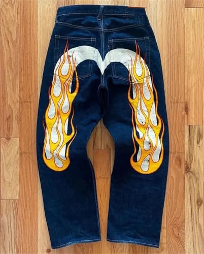HOT ! Women's Gothic Jeans Retro Street Punk Four Seasons Style Printed Wide Leg Jeans