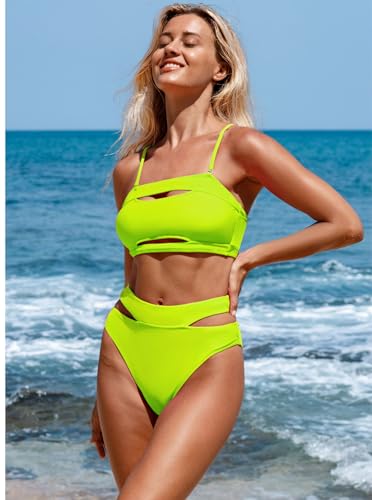 • Design: This high waisted bikini sets for women features patchwork, removable adjustable spaghetti straps, and a removable padded bra.
