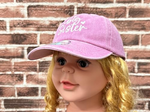 • Unique Design: Vintage Big Sister baseball caps - Capture sibling love with these adorable washed pink kid's dad hats featuring 'Big Sister' with hearts embroidered on the front. Great for a pregnancy announcement or reveal, a gift for the big sis to be, or to keep your girl looking stylish while showing off her new big sister status! It is such a fun and unique way to announce your growing family! They are also heartfelt gifts for birthdays and baby showers. Perfect for matching photos.